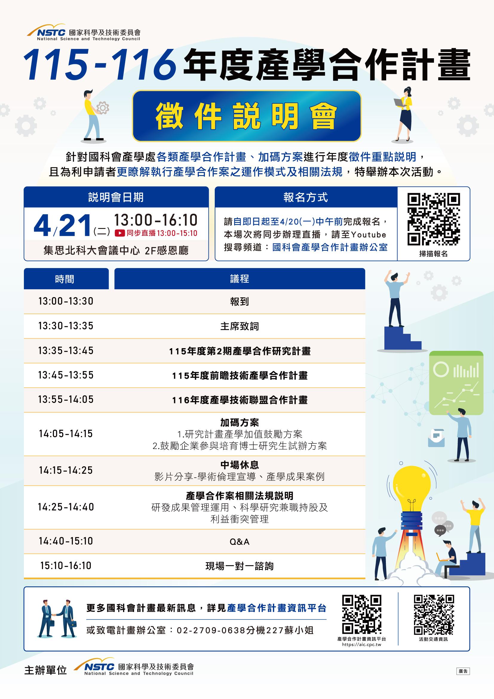 - 本次說明會採實體與線上直播方式進行,線上直播連結經報名後以E-Mail方式提供